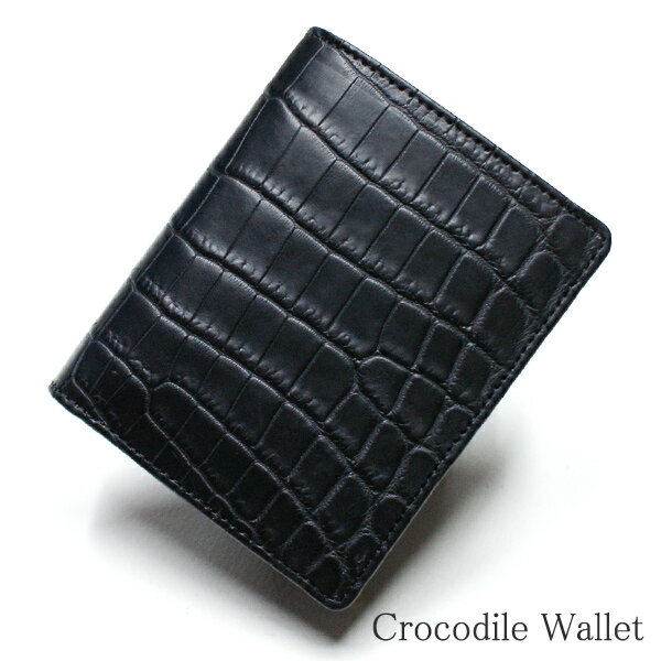 財布 二つ折り財布 折り財布 クロコダイル革 財布 鰐 クロコ 鰐革 ボックス型小銭入れ付 レディース財布 メンズ財布 送料無料 ヌバック ブラック