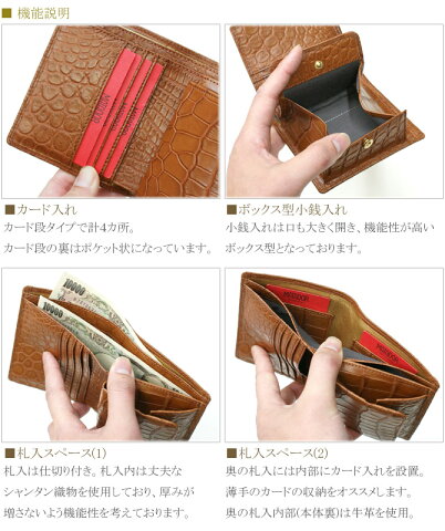 クロコダイル革の折り財布でも珍しく小銭入れ付で、実用性も高いお財布です。