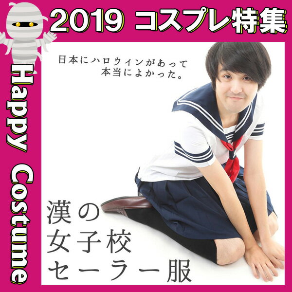 コスプレ セーラー服 半袖 定番 女子校生 女子高生 JK スカート 3点セット 2018 ハロウィン 衣装 仮装 制服 学生服 女装 肩幅 女装子 宅配便 メンズ フリーサイズ 仮装 男性 大きいサイズ 女装 メンズ コスチューム