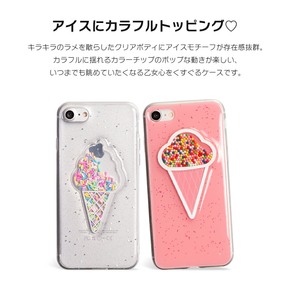 iPhone8 iPhone7 ソフト ケース カバー シリコン メール便送料無料 アイフォン8 アイフォン7 iPhone8 7 Plus ケース iPhone おしゃれ 大人 かわいい キラキラ ラメ 透明 アイス ソフト クリーム 動く チョコ スプレー 立体 プレゼント 「ColorChipice カラーチップアイス」