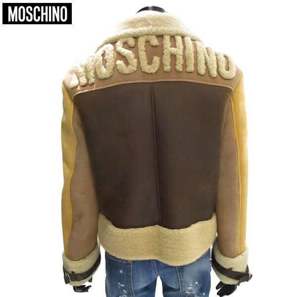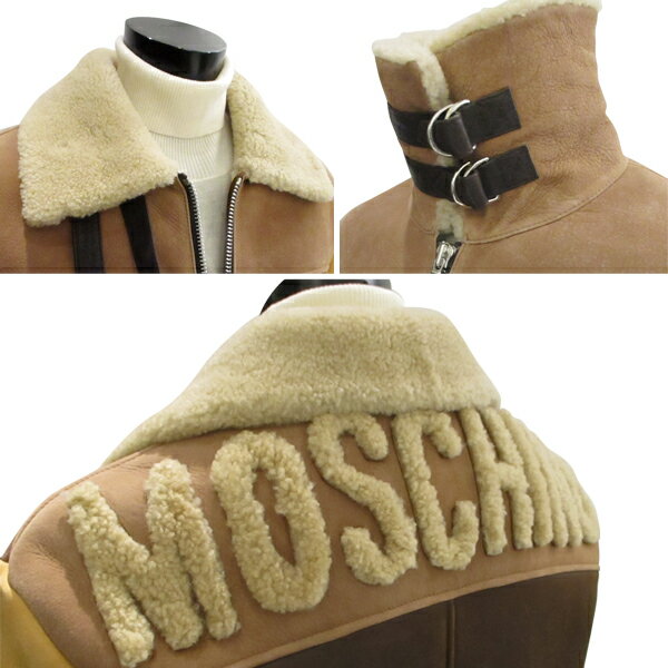 モスキーノ Moschino メンズ ムートン ブルゾン 背中ロゴ バックロゴ リアルムートン 羊革 羊皮 キャメル色 茶色 ベージュ KW7215304 39 71a【送料無料】【smtb-TK】